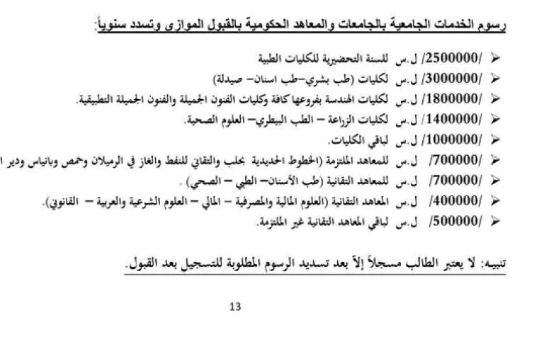 تحديد رسوم الخدمات الجامعية ضمن المفاضلة للتسجيل في التعليم الموازي بالجامعات والمعاهد الحكومية وتسدد سنويا